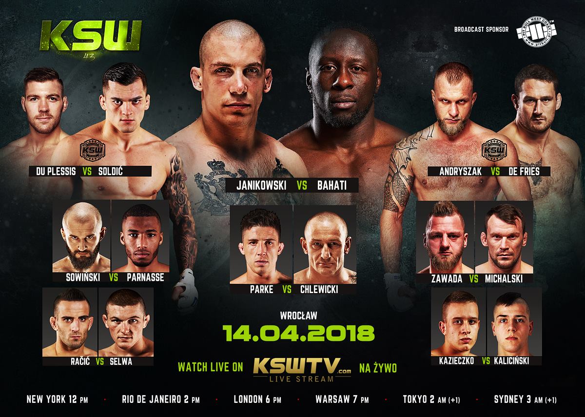 Jakub Wikłacz - Antun Racić GALERIA KSW 63. Damian Janikowski - Paweł Pawlak GALERIA. In the UK and Ireland BT Sport has the exclusive broadcast rights to KSW Walka events including KSW 64 GALA tonight when coverage of the prelims starts at midnight on BT Sport 1 and main card is scheduled to get underway in the wee hours of Sunday at 2am BST. Roberto Soldić zmierzył się z Patrikiem Kinclem na KSW 63.